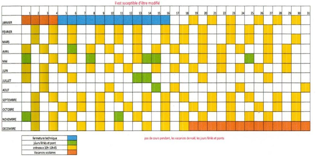 Les lundis, mercredis et vendredis de 10h à 10h45 ( Le ticket est actuellement 9,40 € )