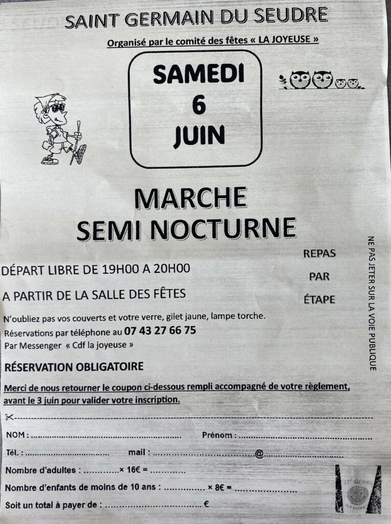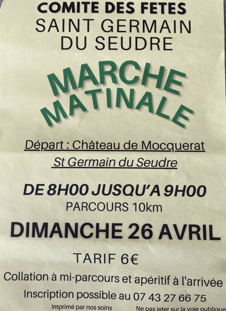 Randonnée ST GERMAIN DU SEUDRE le Dimanche 26/04//2026